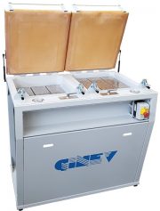 Ideal para pegar suelas en zapatos o y para la elaboración de hormas ortopédicas, la prensa de vacío VACUUM BIG/P está disponible con 1 y 2 puestos de trabajo, o sea con una o dos cubetas.